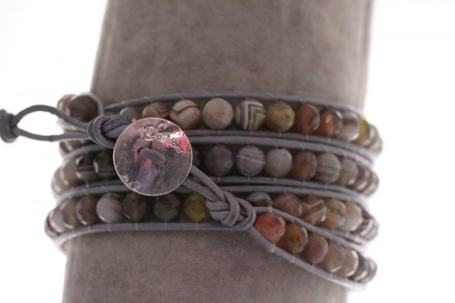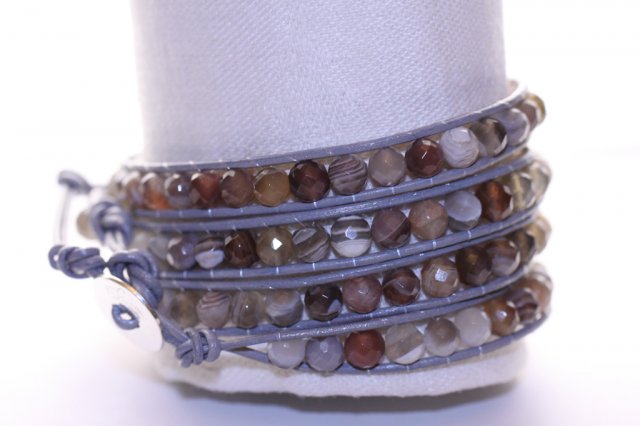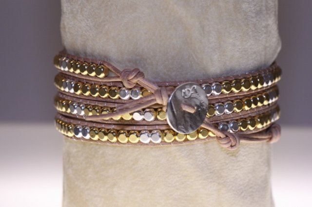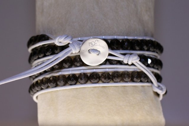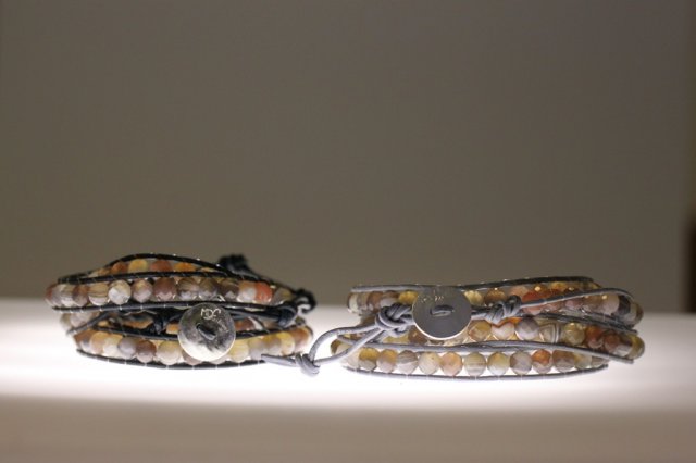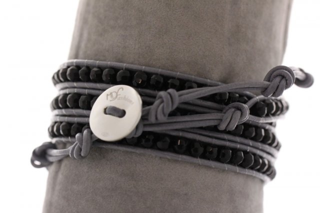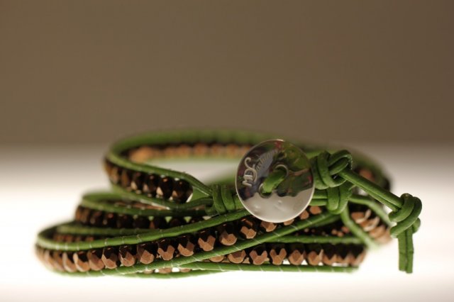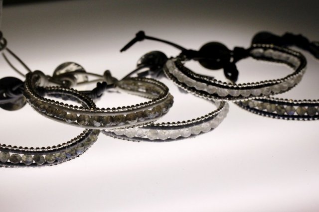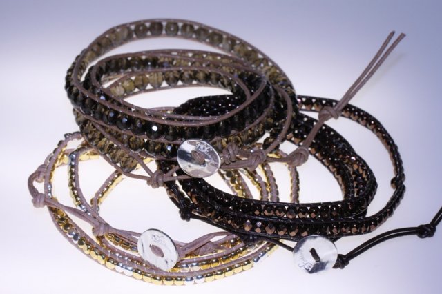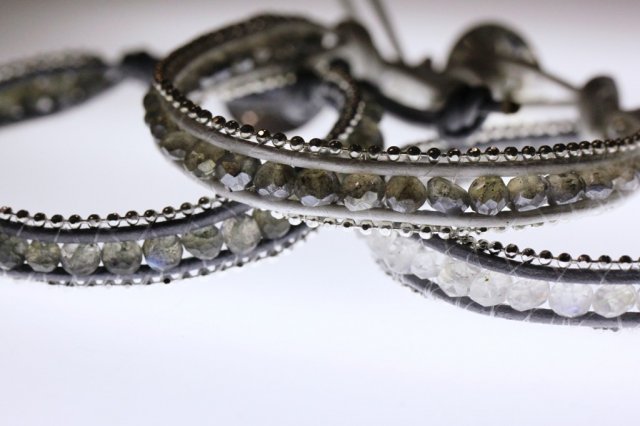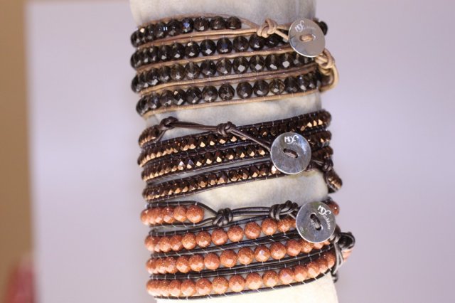 E' la nuova linea della MD Fashions Srl di bracciali raffinati e preziosi, dallo stile hippie chic che si arrotolano in più giri. Sono realizzati in fili di cuoio tra i quali scorrono argento e pietre semipreziose come acquamarina,ametista, smeraldo, quarzo rosa, quarzo citrino, quarzo fumè, spinello nero, pirite,labradorite grigia e bianca.